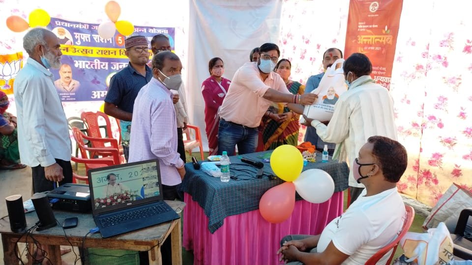 पवित्र नगरी अमरकंटक में शनिवार को प्रधानमंत्री गरीब कल्याण योजना अंतर्गत अन्न उत्सव कार्यक्रम बड़े उत्साह के साथ मंडल अमरकंटक के पदाधिकारियों व आमजन की उपस्थिति में वार्ड क्रमांक 02 में लोगों को अन्न का थैला देकर उत्सव को सफल बनाया गया । इस कार्यक्रम के प्रभारी नगर परिषद उपाध्यक्ष अमरकंटक की गरिमामयी उपस्थिति में वार्ड के पार्षद व जनता जनार्दन की उपस्थिति में अन्न उत्सव मनाया गया । इस उत्सव के बाद मंडल अमरकंटक के पदाधिकारियों के अलावा पार्षदगण की उपस्थिति में वृक्षारोपण भी वार्डो में किया गया , जिसमे मुख्य रूप से मंडल अध्यक्ष रोशन पनारिया , मंडल महामंत्री अभिषेक द्विवेदी(गोलू) , पार्षद अंजना कटारे आदि भारी जन समूह की उपस्थिति में मनाया गया ।