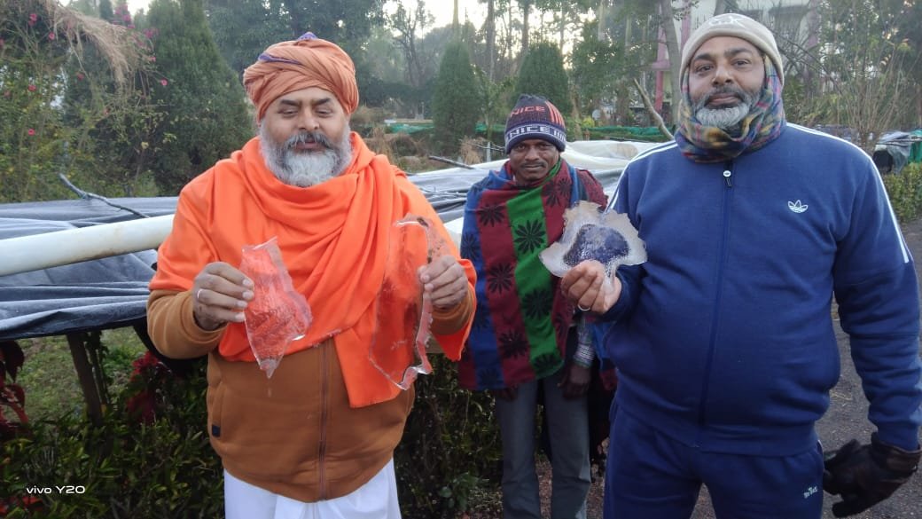 पवित्र नगरी अमरकंटक का विंध्य , सतपुड़ा व मैकल पर्वतीय क्षेत्र में लगातार दूसरे दिन भी ठंड की चपेट में रहा है। अमरकंटक का तापमान न्यूनतम स्तर पर रहा, अमरकंटक का पारा लुढ़क कर 0 डिग्री तक जा पहुचा , जिसका नतीजा अमरकंटक के अनेक स्थानों पर अहले सुबह बर्फ की चादर बिछी रही। ऐसा ही बर्फ की चादर ओढ़े सुबह सुबह अमरकंटक के शांति कुटी आश्रम के संत राम भूषण दास महाराज ने सुबह का नजारा दिखाया , साथ ही बाग बगीचों में जमी बर्फ की परत को भी दिखाया,