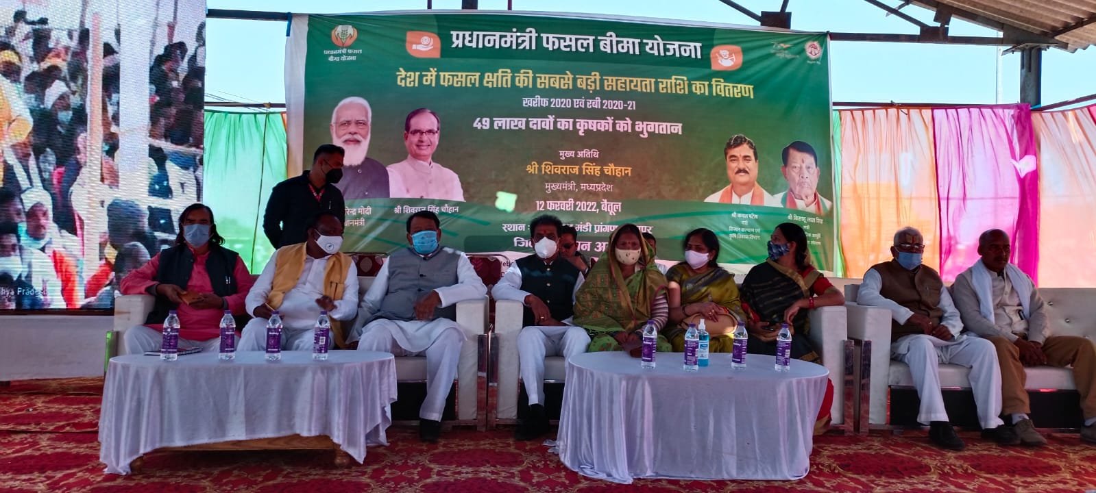 अनूपपुर/ प्रधानमंत्री फसल बीमा योजनांतर्गत खरीफ 2020 एवं रबी 2020-21 के फसल बीमा दावा राशि सिंगल क्लिक के माध्यम से 12 फरवरी को जिला स्तरीय कार्यक्रम प्रातः 11ः30 बजे से कृषि उपज मण्डी प्रांगण अनूपपुर में खाद्य, नागरिक आपूर्ति एवं उपभोक्ता संरक्षण विभाग के मंत्री बिसाहूलाल सिंह के मुख्य आतिथ्य में आयोजित किया गया। मध्यप्रदेश कांग्रेस कमेटी के प्रदेश सचिव श्रीधर शर्मा ने जिला प्रशासन व भाजपाइयों पर आरोप लगाया है कि कार्यक्रम में जिला प्रशासन की अव्यवस्था व भाजपाइयों की मंचीय जद्दोजहद ने कार्यक्रम को विफल किया व उक्त कार्यक्रम में पहुंचे कलमकारों के बैठे होने पर उन्हें उठा कर नेताओ को बैठाया गया। बैठने की व्यवस्था न होने, कार्यक्रम में भीड़ न होने पर कृषि मंडी में सब्जी बेचने आए किसानों को जबरन पकड़कर बैठाया गया। कार्यक्रम की विफ़लता जिला प्रशासन के सामने आई, जिसके बाद किसानों की जगह सिर्फ भाजपा के नेताओ ने भीड़ बढ़ा कर जिला प्रशासन के विफल कार्यक्रम को सफल बनाया।