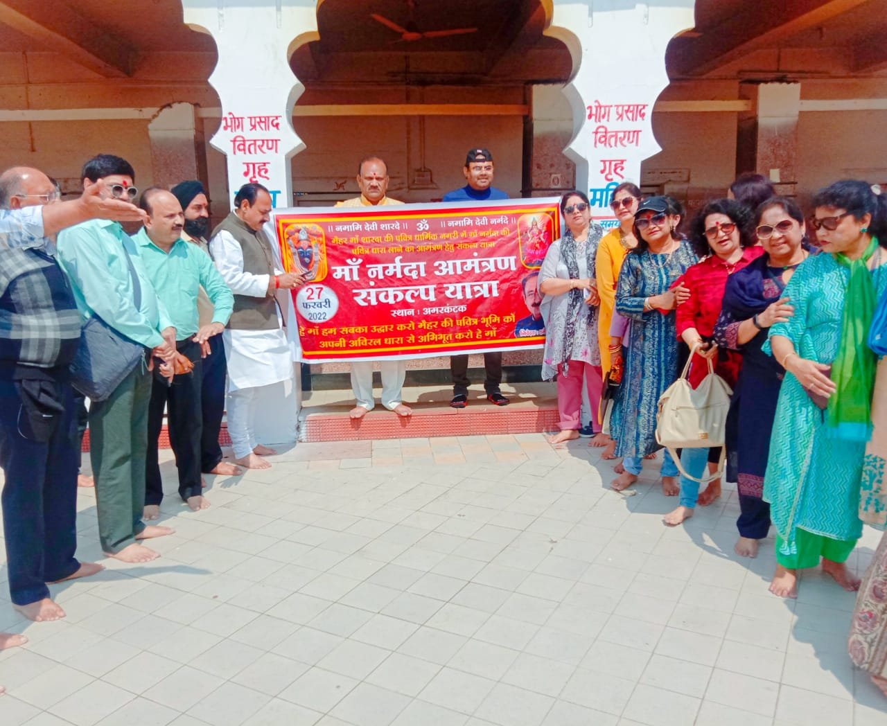 अमरकंटक पहुच कर माँ नर्मदा के दर्शन प्राप्त कर माँ नर्मदा आमंत्रण संकल्प यात्रा का शुभारंभ किया गया । अपने पूरे सैकड़ो टीम के कार्यकर्ता के साथ संकल्प लेकर नर्मदा जल भरकर यंहा से मैहर माँ शारदा जी के चरणों मे समर्पित कर अपने यंहा व क्षेत्र में नर्मदा जल पहुचे व नगर सहित क्षेत्र वासियों को जल ही जीवन है का संकल्प पूर्ण हो ऐसा भाव लिए हुए अध्यक्ष ने यह यात्रा यंहा से प्रारंभ किये है ।