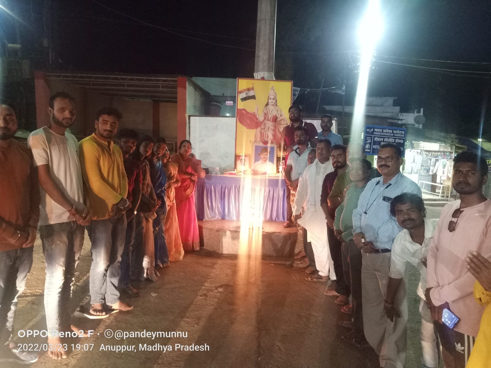 पवित्र नगरी अमरकंटक में भारत के लाल वीर सपूत शहीद भगत सिंह के लिए आज शाम नगर के प्रमुख चौराहे पर नगर के युवाओं के द्वारा महा आरती का आयोजन किया गया था जिसमें मां भारती के लिए शहीद हुए अमर शहीद वीर भगत सिंह की श्रद्धांजलि के लिए मां भारती का महाआरती कर श्रद्धा सुमन अर्पित किया गया नगर के युवाओं द्वारा राष्ट्र भक्ति से ओतप्रोत यह कार्यक्रम आयोजित किया गया यह कोई राजनीतिक कार्यक्रम नहीं था इसमें नगर के युवाओं के अलावा वरिष्ठ व कनिष्ठ जनों ने अंबिका प्रसाद तिवारी , दिनेश द्विवेदी , वंदना मिश्रा , अभिषेक द्विवेदी , श्रेयांश द्विवेदी , श्रवण उपाध्याय , उमा शंकर पांडेय , रमेश करायत , विक्की द्विवेदी , रंजीत सिंह , सूरज साहू , गोपाल साहू , वैद्य प्रदीप शुक्ला , शिवानी शुक्ला , विपुल बर्मन आदि जनमानस अपने श्रद्धा सुमन अर्पित किए।।