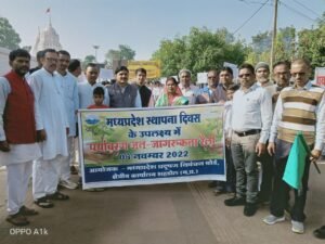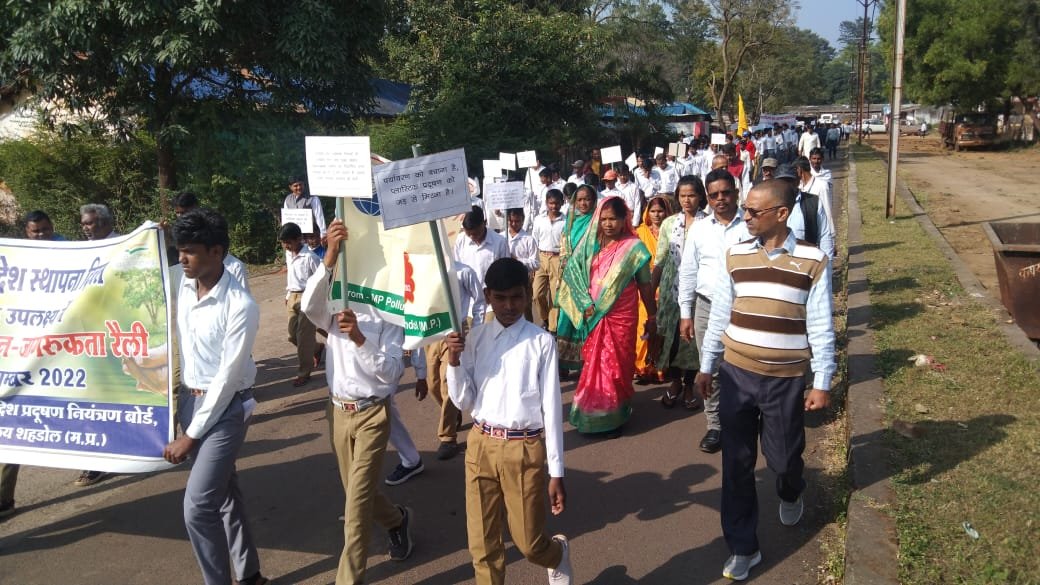 आज रविवार को प्रातः 8.30बजे अमरकंटक के मां नर्मदा जी की उद्गम स्थली के प्रमुख द्वार से क्षेत्रीय कार्यालय म प्र प्रदूषण नियंत्रण बोर्ड शहडोल के अधिकारी व उनकी टीम के द्वारा आज दिनांक ०६-११-२०२२ को मध्यप्रदेश स्थापना दिवस के साप्ताहिक कार्यक्रम के अंतर्गत पर्यावरण जनजागृत रैली का आयोजन किया गया । रैली का शुभारंभ अध्यक्ष नगर परिषद अमरकंटक द्वारा हरी झंडी दिखाकर रवाना किया गया । रैली में मुख्य रूप से सिंगल यूज प्लास्टिक का प्रतिबंध एवम खुले में कचरा जलाने पर प्रतिबंध संबंधी उपस्थित जन समुदाय को पंपलेट एवम बैनर पोस्टर के माध्यम से जानकारी प्रदान की गई । पर्यावरण जन जागरूकता रैली नर्मदा मंदिर के प्रमुख द्वार से प्रारंभ होकर नगर के मुख्य सड़कों से होते हुए शांति कुटी आश्रम , मृत्युंजय आश्रम , कल्याणिका स्कूल , शिव गोपाल आश्रम , कल्याण आश्रम , गुरुद्वारा , दीनदयाल उपाध्याय चौक होते बैतरणी बस स्टेंड घूमते हुए सामुदायिक भवन में पहुंच कर विराम किया गया । पर्यावरण जनजागरण में कल्याणिका स्कूल , शासकीय उच्चतर माध्यमिक स्कूल , सरस्वती स्कूल के लगभग 300 विद्यार्थियों द्वारा उत्साह पूर्वक भाग लिया गया ।