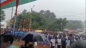 भारी बारिश के बीच सार्वजनिक ध्वजा रोहण उत्साह के साथ मनाया गया