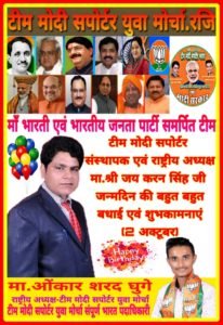 **उत्तर प्रदेश क्राईम रिपोर्टर राजीव सक्सेना की रिपोर्ट ** टीम मोदी सपोर्टर रजि (भारत) संस्थापक एवं राष्ट्रीय अध्यक्ष-मा.श्री जय करन सिंह जी आपकों जन्मदिन की बहुत बधाई एवं शुभकामनाएं टीम मोदी सपोर्टर युवा मोर्चा राष्ट्रीय अध्यक्ष मा ओंकार शरद घुगे सभी राष्ट्रीय कार्यकारिणी युवा मोर्चा पदाधिकारी सभी युवा मोर्चा प्रदेश अध्यक्ष/प्रदेश कार्यकारिणी, सभी युवा मोर्चा जिला अध्यक्ष/जिला कार्यकारिणी, सभी युवा मोर्चा विधानसभा अध्यक्ष/विधानसभा कार्यकारिणी, सभी युवा मोर्चा ग्राम अध्यक्ष/ग्राम कार्यकारिणी सभी युवा मोर्चा सदस्यों की तरफ से माँ भारती एवं भारतीय जनता पार्टी समर्पित टीम।bsp24news सत्यता की पहचान हमारा हिन्दुस्तान 6264105390 न्यूज़ के लिए सम्पर्क करें